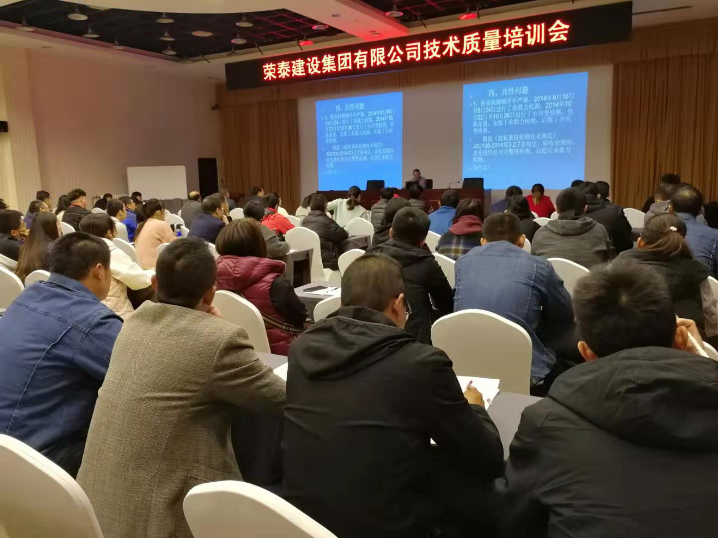 为提高工程质量及技术水平水平,11月9日荣泰集团邀请西海岸新区质监站专家在西海岸新区党校举办工程质量技术专题培训班。培训班根据工程施工标准和规范,由专家详细讲解了混凝土的性能、试块的留置,施工程序、工程质量、“人、机、料、法、环”质量控制因素、内墙抹灰、桩头防水、工程创优等方面内容,培训内容结合案例教学,参训学员认真听讲、积极参与,互动及讨论、分享过程热烈,取得了较好的培训效果,培训结束前,对参训学员进行了现场考试。