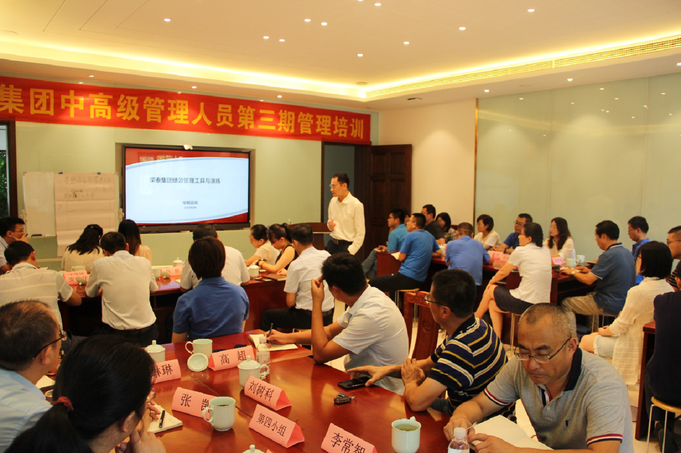 炎夏已过,岁至金秋,集团组织变革与战略实施已进行了152天。在华朗咨询团队的指导下,集团组织架构已调整完毕,各部门制度建设有序进行中。接下来将要进行改革的重点,薪酬体系建设与绩效考核制度的实施。为此集团在8月29日组织中高级管理人员进行为期一天的培训,本次培训特邀华朗咨询团队张博士与李老师为大家讲授。