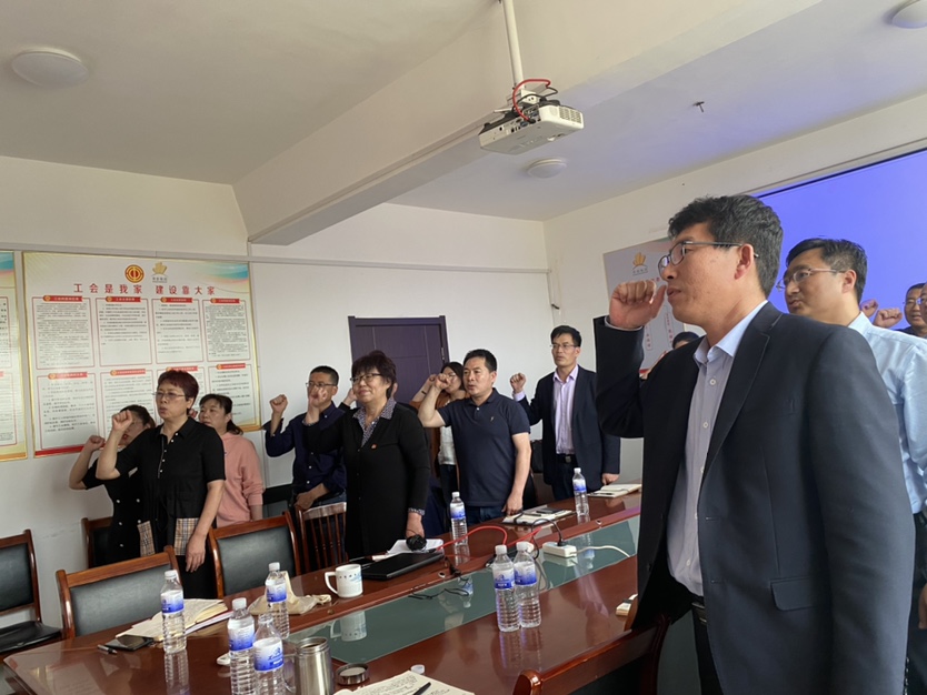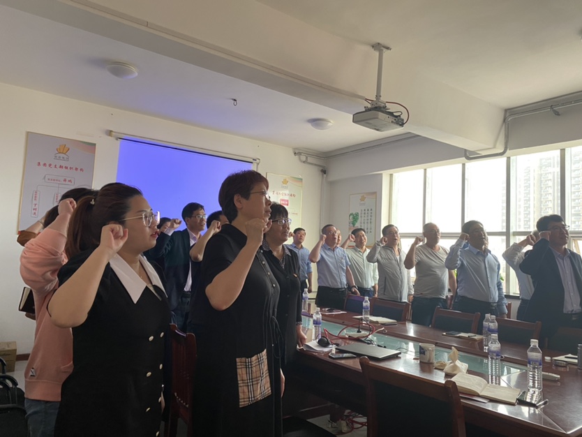 在学习之前,党支部组织委员丁树连同志带领大家重温入党誓词。