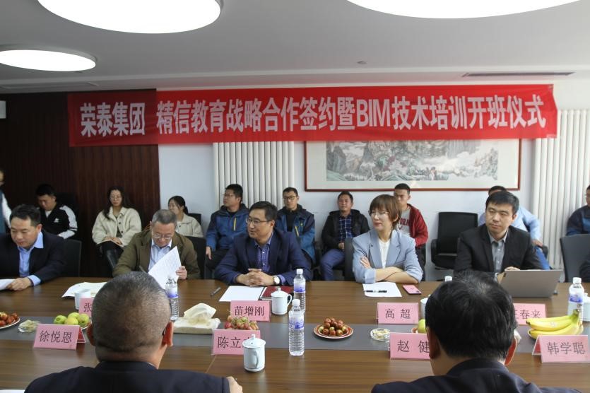 11月2日上午,荣泰集团与精信教育的战略合作签约暨BIM技术培训开班仪式在荣泰集团隆重举行,荣泰集团轮值总裁苗增刚、中精信副总经理兼精信教育董事长陈立志、中精信副总经理徐悦恩等双方领导及近30名学员参加仪式,荣泰集团技术中心主任宋立功主持签约及开班仪式。