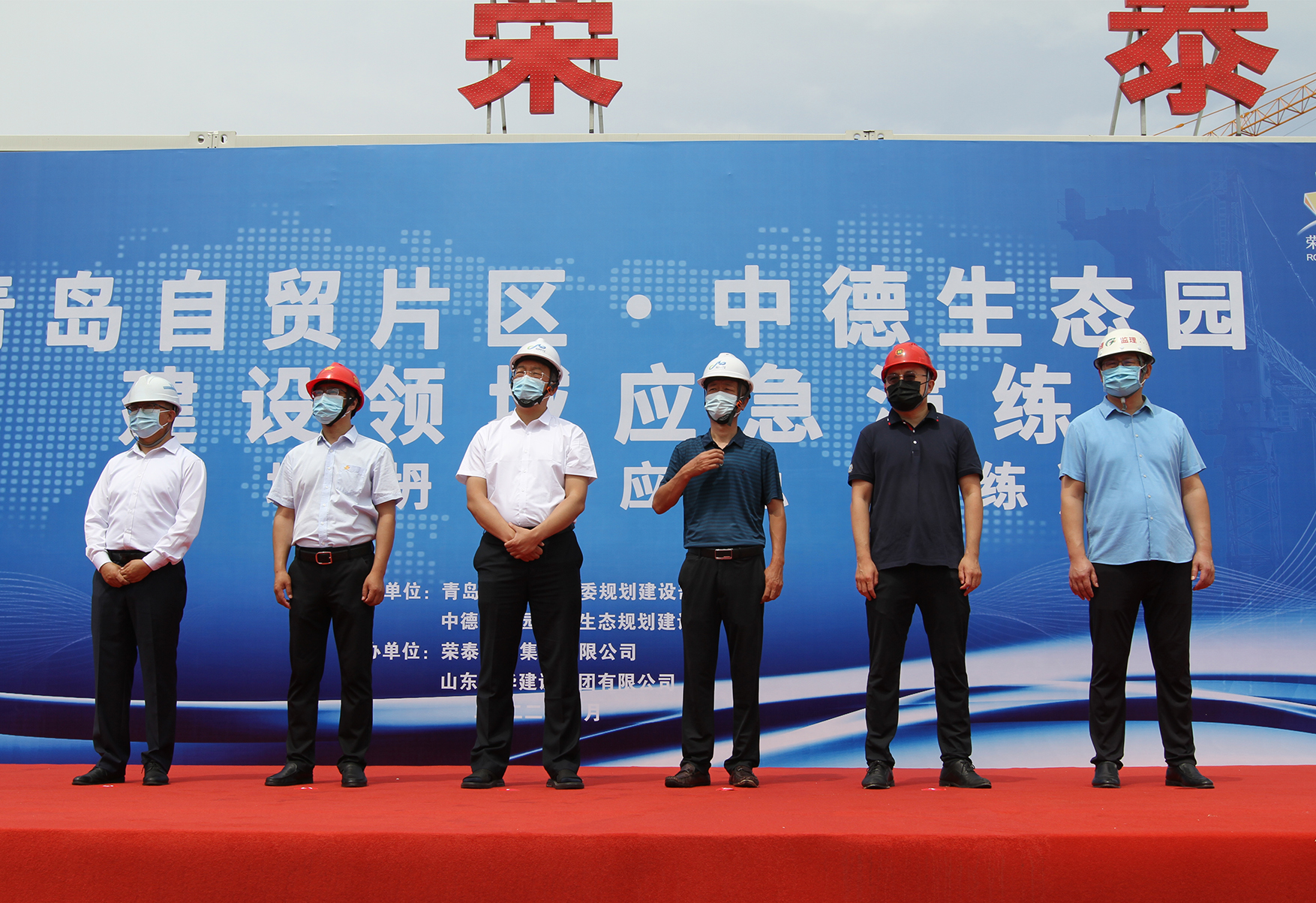 参加本次应急演练的领导嘉宾有青岛自贸片区规建部副部长周彦霖、青岛西海岸新区住房和城乡建设局建筑业管理科科长张焕欣、168网副总裁苗增刚、山东兴华建设集团有限公司副总裁陈相宇、青岛海控未来城开发有限公司经理孙钰斐、青岛建通浩源集团有限公司副总裁徐明明,以及青岛自贸片区规建部、168网、山东兴华建设集团有限公司等单位相关人员。