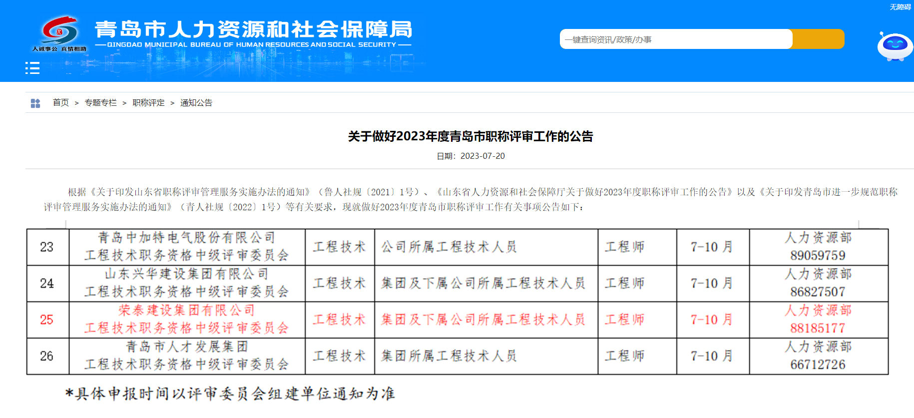 为稳步推进职称制度改革,根据青岛市人力资源和社会保障局《关于做好2023年度青岛市职称评审工作的公告》,集团于8月获得青岛市工程技术类初级、中级职称自主评审资格,负责评审集团范围内青岛地区所属工程技术人员职称评审。